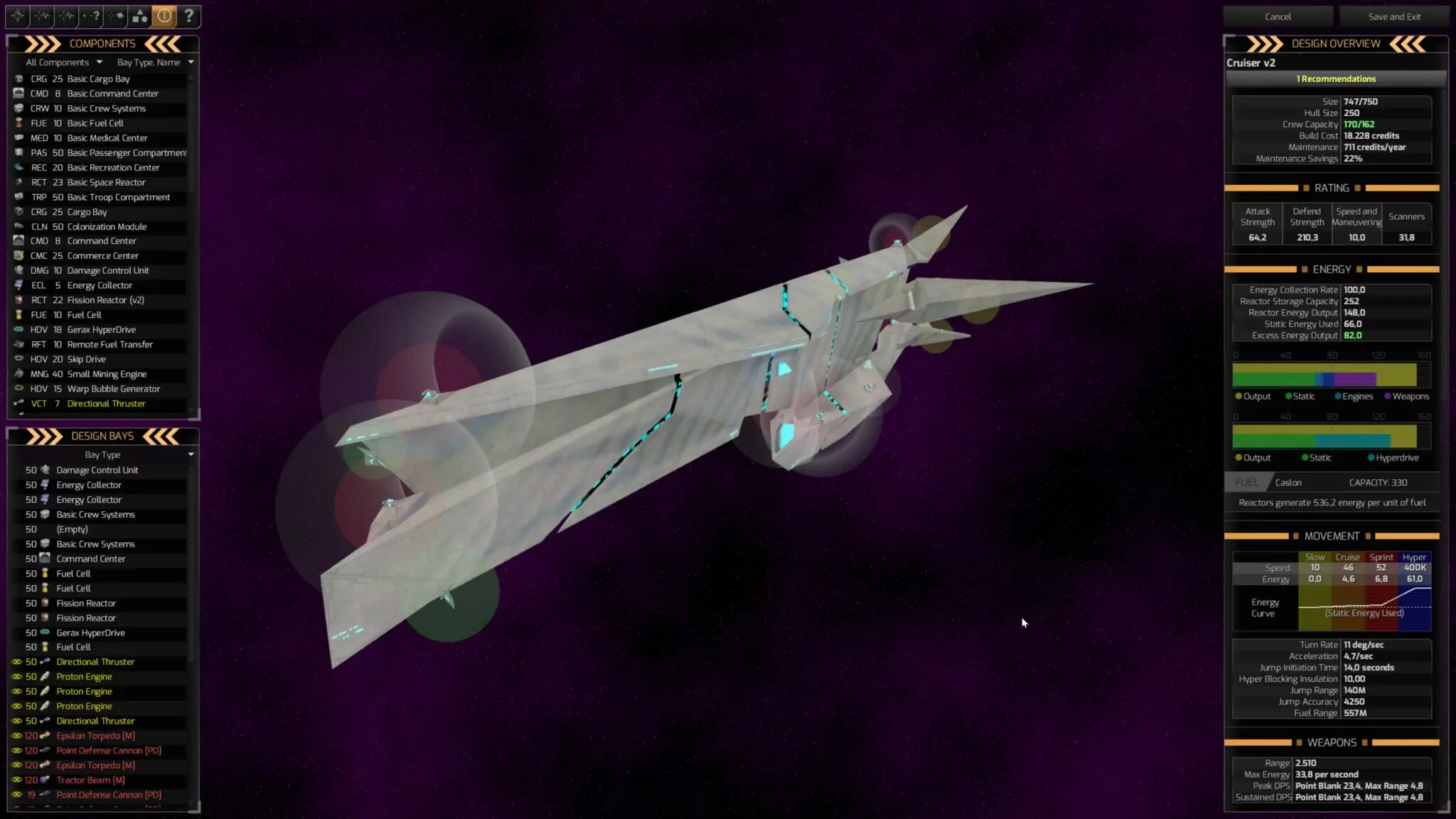 Schepen kunnen worden uitgerust met wapens, motoren & Co. via een editor, die Distant Worlds 2 dan daadwerkelijk op het 3D model weergeeft.