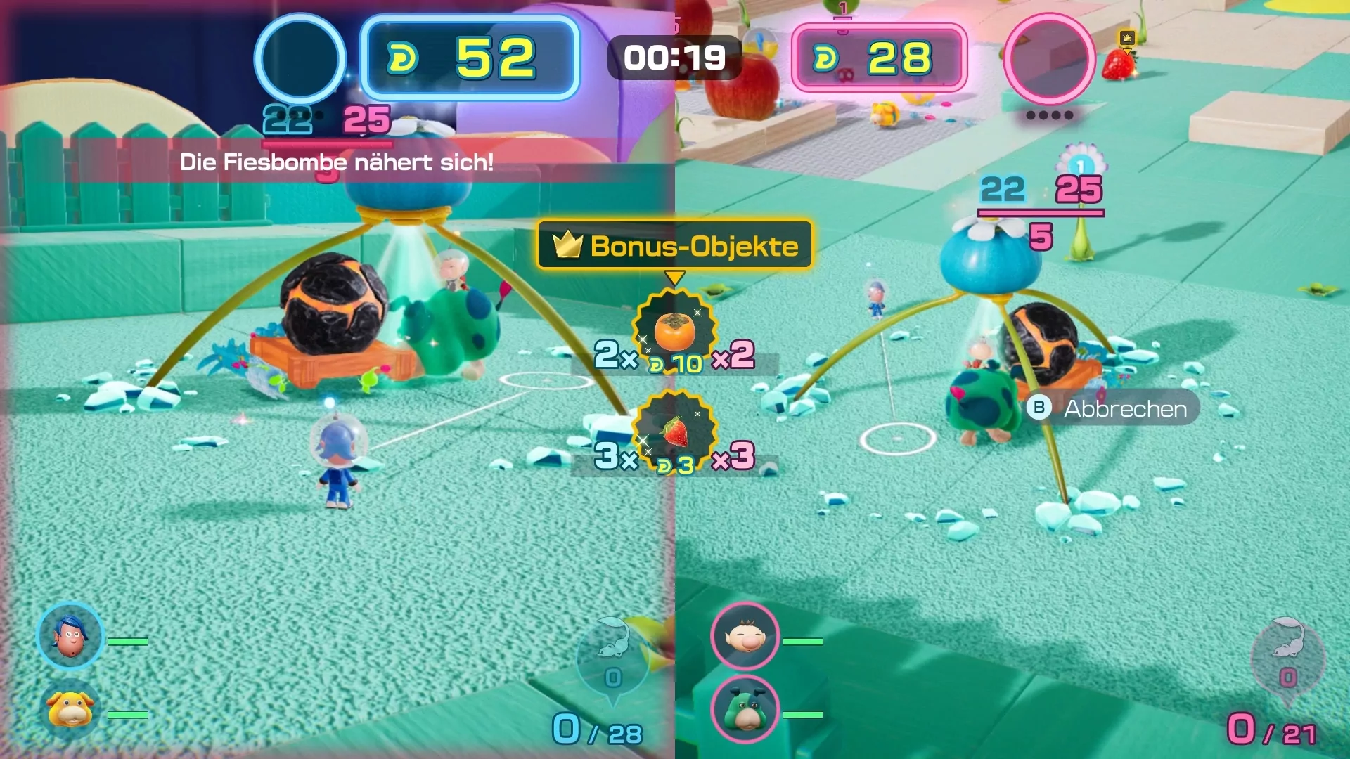 Závody jsou napínavé, ale někdy chaotické, protože kvůli podobným barvám je obtížné rozlišit vlastního Pikmina od ostatních a rozdělená obrazovka přirozeně omezuje přehled. Nicméně souboje jsou rychlé a náročné, protože AI protivník je dobrým sparingpartnerem.