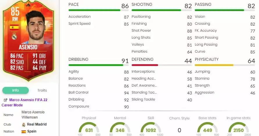 Numbers Up Марко Асенсио е картата за спечелване на мач по дясното крило. Испанецът от Реал Мадрид е достъпен чрез SBC на стойност 45 000 монети. Тъй като носи обувки Adidas Predator, дрибълът му се повишава до 99 в края на сезона.