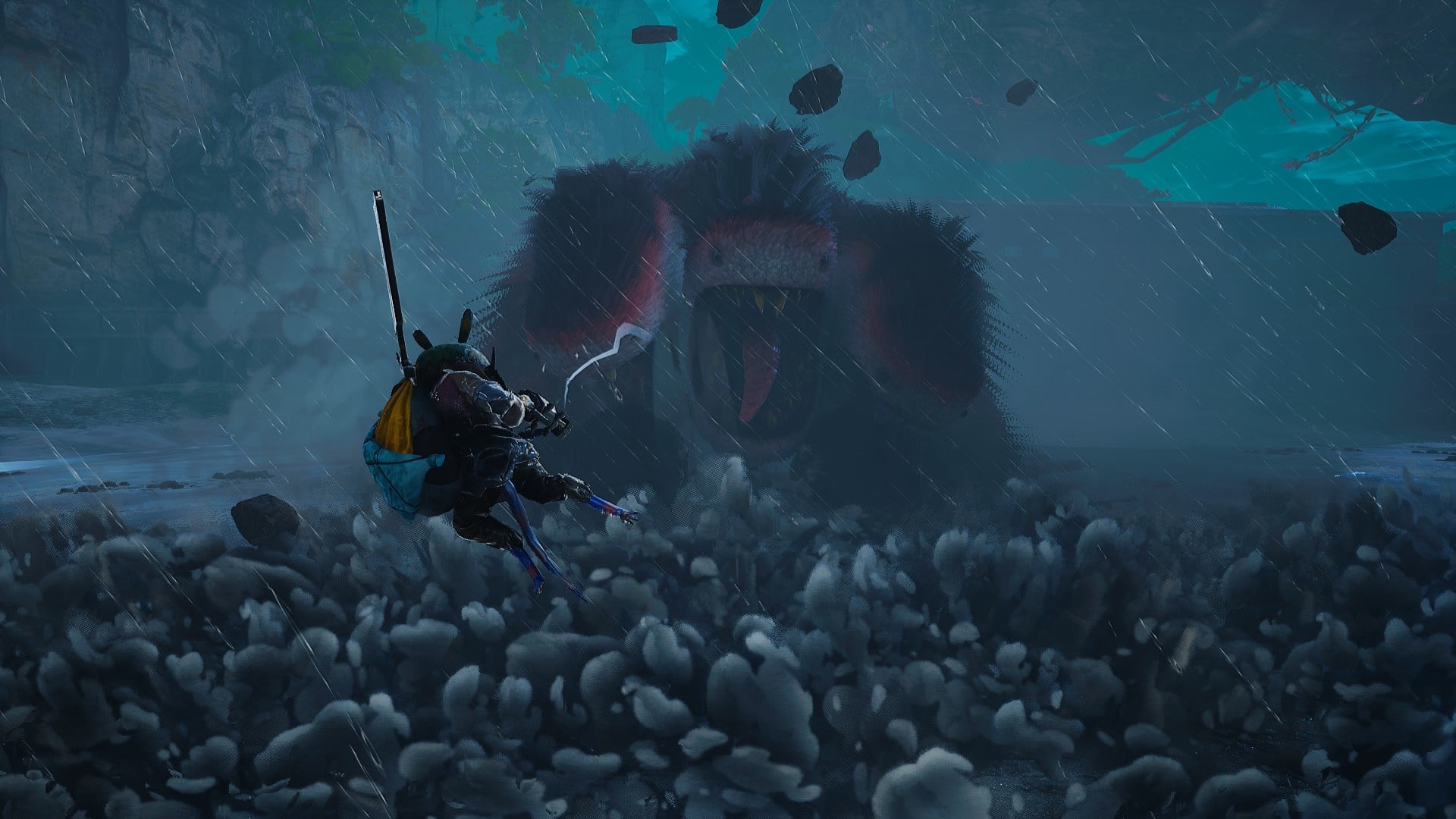 Моята планина в Biomutant изглежда така, сякаш съм гледал филми на Студио Гибли 24 часа подред, докато съм изял три големи пици и след това съм сънувал кошмар. Тя е величествена и грациозна. Когато погледна лицето му, не знам дали да се смея, да плача или да избягам с викове, и го правя едновременно.