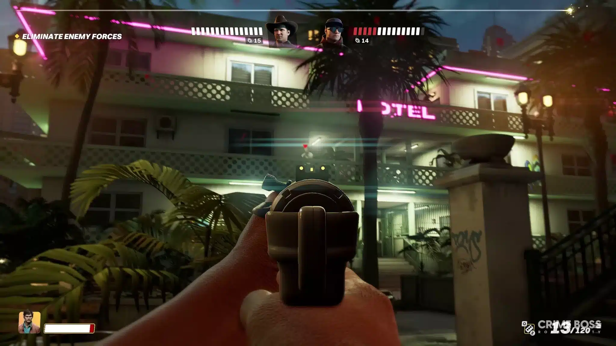 Ces ennemis foncent dans le jeu en voiture, en camionnette ou en hélicoptère et attaquent de toutes les directions – se retrancher quelque part ne fonctionne pas, Crime Boss exerce une pression constante, surtout dans les dernières étapes de la mission.