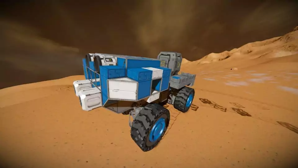 In Space Engineers you can build rovers as well as spaceships. These are not as versatile as their flying counterparts, but they are cheaper to build. When building a rover, keep the centre of gravity as low as possible to avoid tipping over in sharp turns.