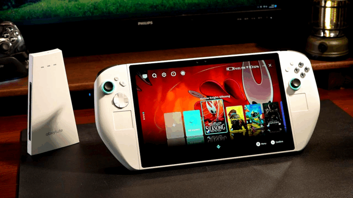Ecco cosa offre il dispositivo portatile: A prima vista, l’Abxylute 3D One sembra uno Steam Deck allungato verso il basso. Il dispositivo è infatti piuttosto grande e dispone, ad esempio, di un display LCD da 10,95 pollici.