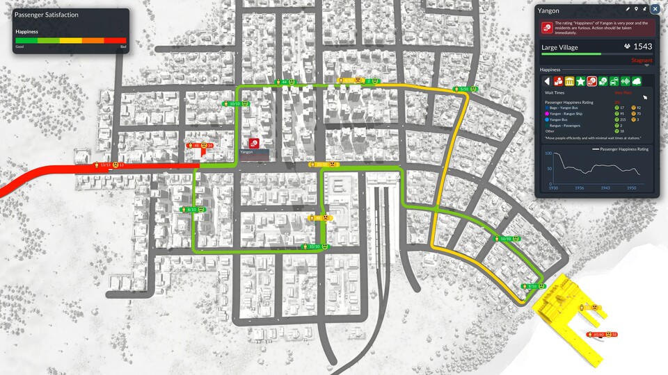 Se invece portate rapidamente Dieter a fare shopping e rifornite il suo villaggio con i prodotti desiderati, il villaggio crescerà lentamente. Proprio come nei giochi precedenti. Ma ora in Transport Fever 3 ci sono più fattori che influenzano la crescita, tra cui: