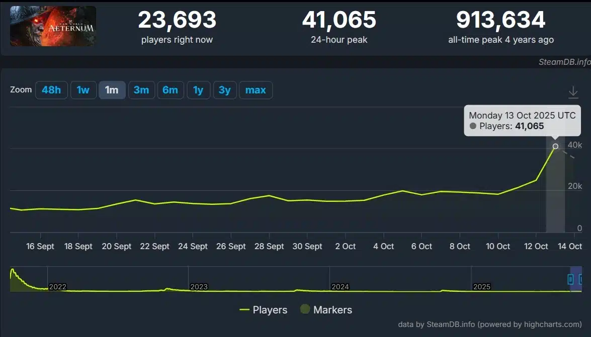 Ciò non significa che fosse completamente privo di vita. Nel 2024 c’è stato un tentativo di rilancio, con lo spin-off Aeternum e un’uscita anche su console. Ma il vero boom è arrivato solo ora, nell’ottobre 2025, dopo l’inizio della stagione 10. Perché?
