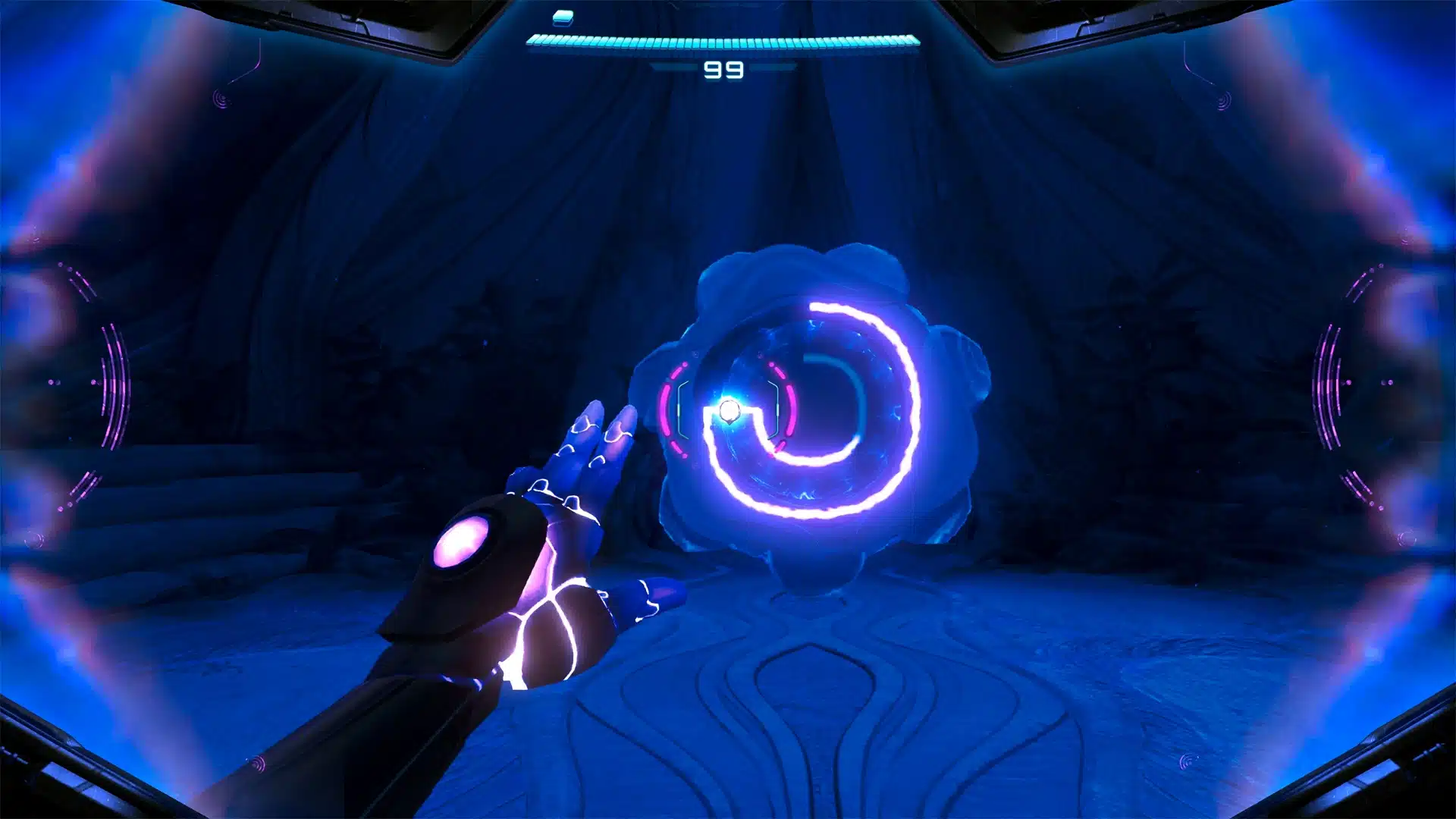 多機能なアームキャノンで道を開き、古代の遺跡の前に立つ。そこには、殺意に満ちたエイリアンと、山のような謎が待ち構えている。サムスのヘルメットに搭載された新しいサイセンサーを使って、小さなパズルを解き、扉を開け、スイッチを起動する。