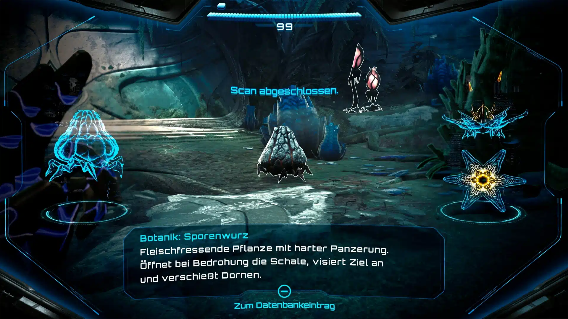 メトロイドを知っている人なら、実際のストーリーを語るのは、多くの場合、異質な環境であることもご存じでしょう。3 作の前作と同様、固定されていないものはすべてスキャンすることができます。ドア、石、植物、敵、動物など…