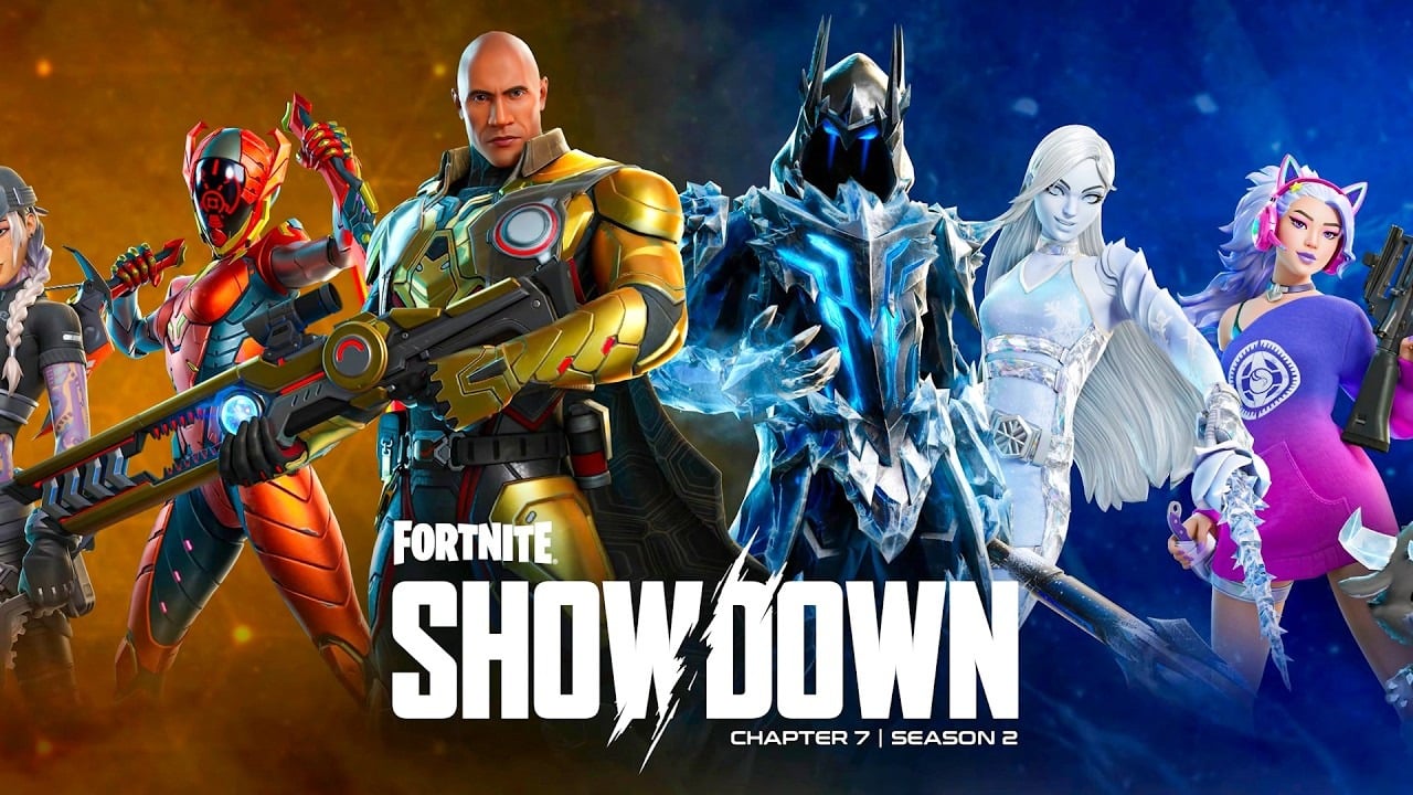 Dark Voyager i Ice King są teraz na wyspie i zamierzają pokonać The Seven. W rozdziale 7, sezonie 2, Ice King zmierzy się z The Foundation. To poważna rywalizacja i właśnie dlatego sezon nosi tytuł Showdown. W Fortnite Showdown gracze muszą wybrać, kogo będą wspierać: The Foundation czy Ice King. Następnie, w trakcie gry, muszą starać się wygrać rywalizacje, aby ukończyć wyzwania społecznościowe Fortnite Showdown i pomóc swojej drużynie wspiąć się na szczyt. Akt 1, „Rise of the King”, dobiegł końca, ponieważ zarówno drużyna Fundacji, jak i drużyna Króla Lodu osiągnęły wszystkie cele kamieni milowych Showdown, wygrywając rywalizacje dla swojej drużyny.