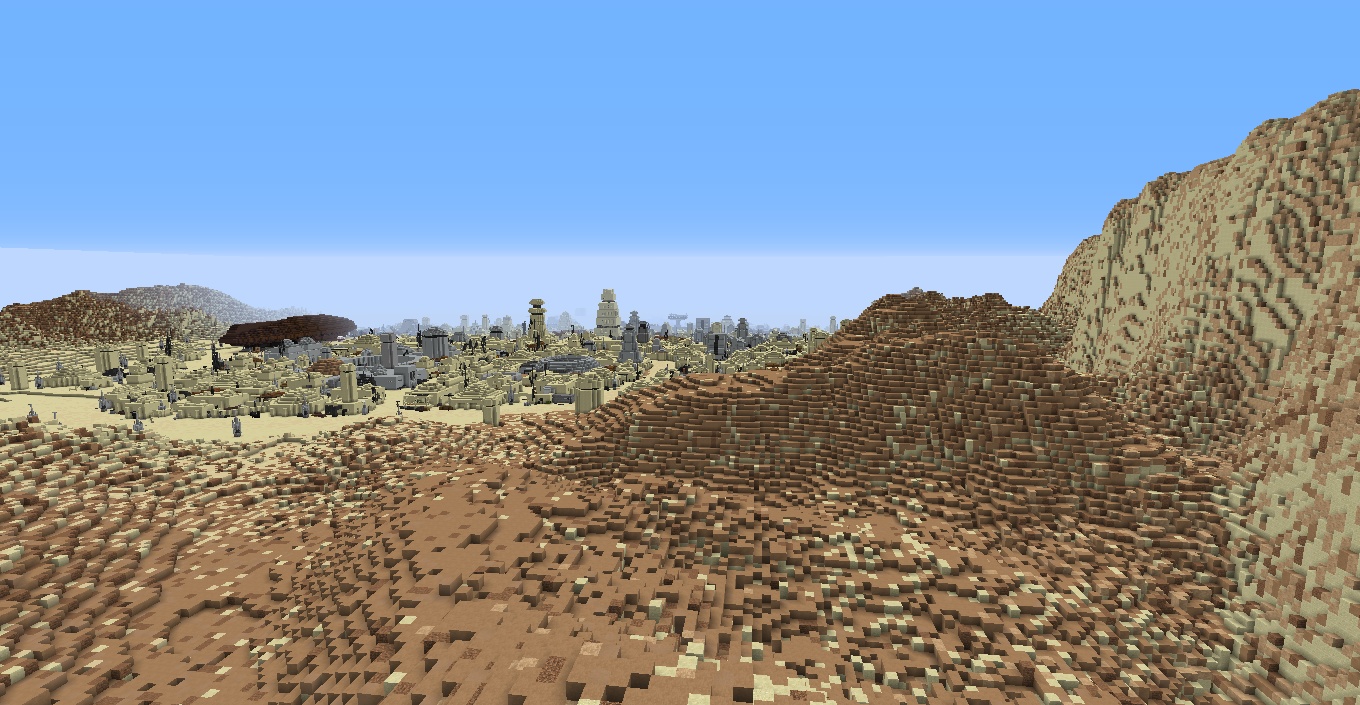 Um motivado fã da Guerra das Estrelas tem em vista grandes coisas: Recriar toda a galáxia da Guerra das Estrelas em Minecraft. Coruscant e Tatooine já estão feitos.