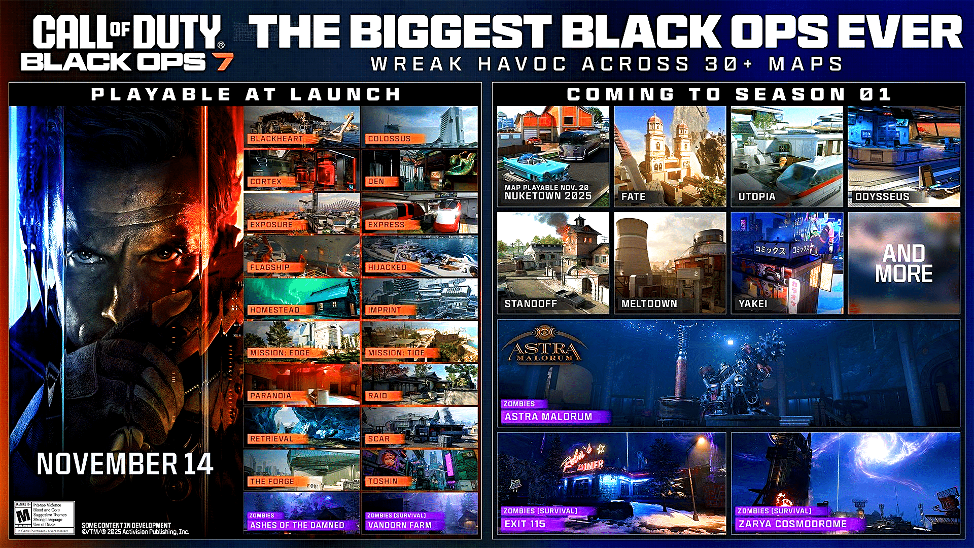 《黑色行动7》发布时拥有18张地图的强大首发阵容。但几周后,这个数字将增长到25张——这是该系列的纪录。
