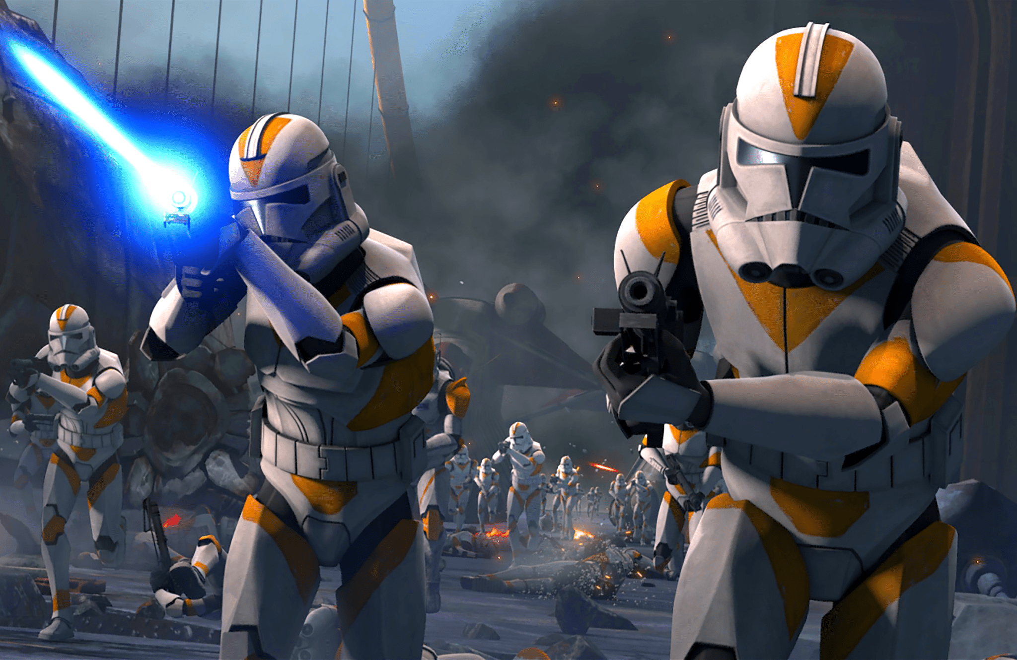 和,这段充满动作感的场景描述了科迪指挥官的部队在乌塔帕乌星球登陆的场景,在第三集事件中,该星球被分离主义者控制。